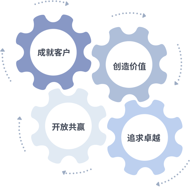成就客户是一切决策的出发点,创造价值是衡量所有工作的标准,追求卓越是优德88做事做人的态度,开放共赢是优德88的格局也是最终的结果。价值观的齿轮环环相扣,推动着组织里的每个人不断向前。